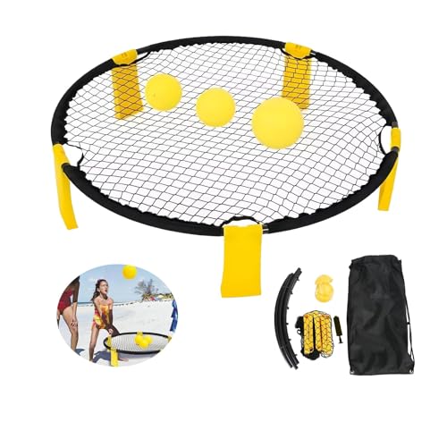 - 【FÁCIL DE DESMONTAR Y EMPACAR】las patas de juego son plegables, lo que hace más resistente el producto, mejoran el agarre de toda la estructura y no se mueven durante el juego, jugar con los amigos y desahogarse. - 【FUERTE RED ELÁSTICA】Los materiales de las bandas de goma y los alambres de fibra garantizan una elasticidad y firmeza suficientes. Independientemente de la fuerza que el jugador ejerza sobre el juego después de un largo período de uso, el alambre metálico - 【POLIVALENTE】 Ya sea en el parque, en un pasillo, de vacaciones en la playa, en las montañas, en la nieve - Spiderball es ligero, cabe en todos los bolsillos y puede ser jugado en cualquier lugar como un juego en o al aire libre. - 【AMPLIAMENTE UTILIZADO】La red puede instalarse fácil y rápidamente en cualquier lugar: en el jardín, en el campamento, en la playa o en el parque. Promueve el ejercicio físico, la coordinación y la concentración y además es muy divertido. - 【Gran juego 】con marco de diseño deportivo, diseño de embalaje sencillo y una disposición única. Con el kit de juegos al aire libre puedes estar activo a ti y a todos a tu alrededor. Este es sin duda un gran regalo para niños, adolescentes y adultos