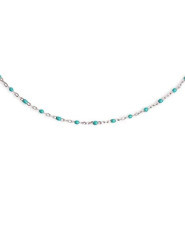 SINGULARU - Collar Dots Turquoise Enamel. Cadena con Piedras Naturales en Plata de Ley 925 con Acabado en Baño de Rodio. Talla Única. Joyas para Mujer
